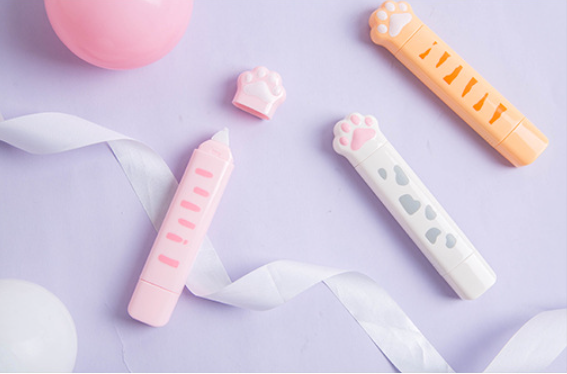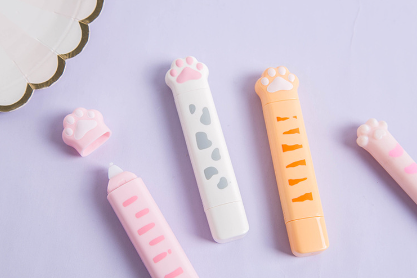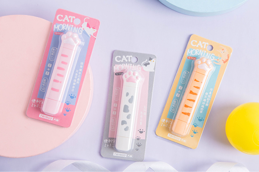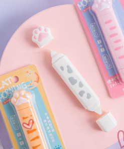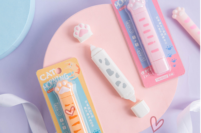 Korekčná páska a lepiaca páska v jednom valčeku v tvare mačacej labky.