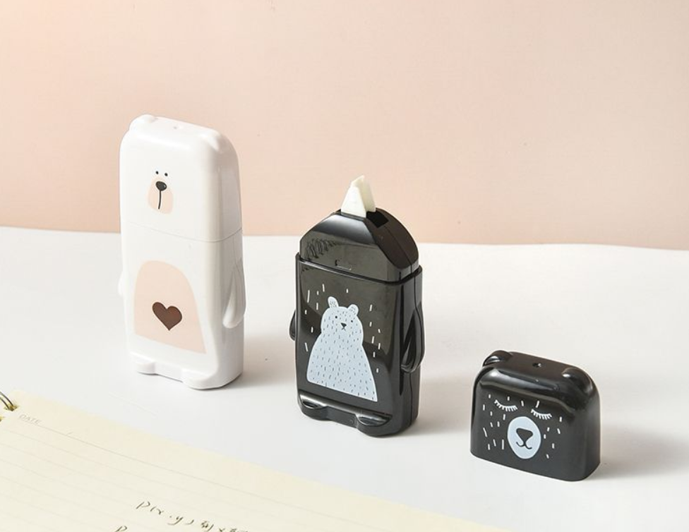 Korekčná páska v tvare medveďa v bielej alebo čiernej farbe.