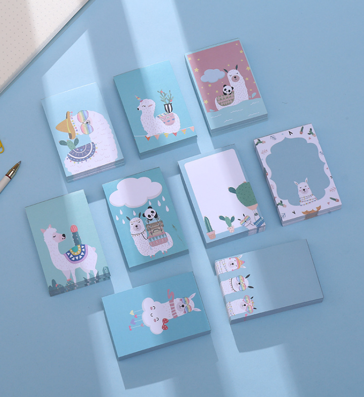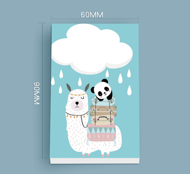 Poznámkové bločky so zvieratkom alpaka a pandou. Rôzne dizajny.